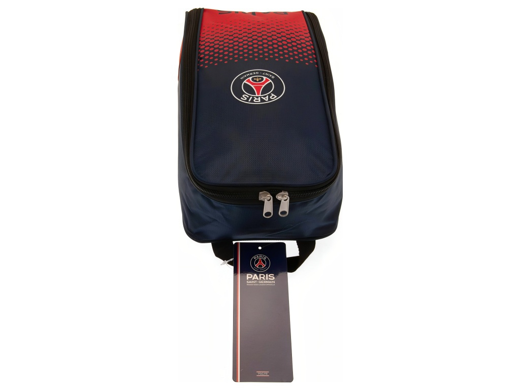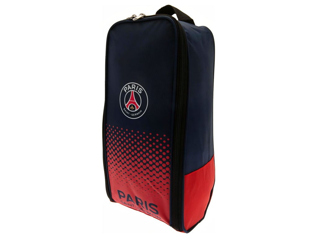Taška na obuv Paris Saint‑Germain v modro‑červeném designu se širokým otevíráním na dvojitý zip udrží boty odděleně a snadno přístupné. Tmavě modrá základna s červenými panely a přechodovým tečkovaným motivem navazuje na klubové barvy, vpředu je klubový znak a nápis Paris Saint‑Germain. Vyrobeno z polyesteru, který je odolný a jednoduše se čistí. Zip vede po třech stranách pro pohodlné odklopení víka, dvojitý jezdec zrychlí balení i vybalování. Horní poutko usnadní přenášení či zavěšení a rozměry 35 × 18 × 12 cm pojmou kopačky i volnočasovou obuv.