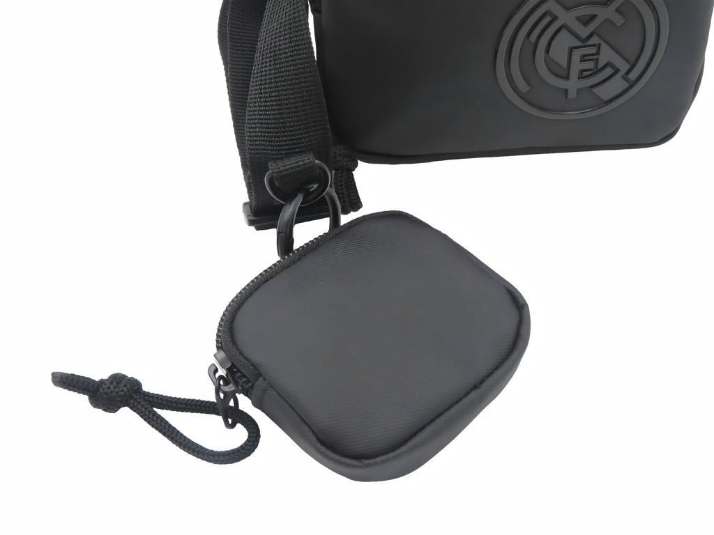 Tahle taška je přesně to, co oceníš cestou na stadion, do města nebo kamkoli, kde nechceš tahat batoh. Telefon, klíče a sluchátka máš po ruce, a díky černému designu se hodí ke všemu. Pogumovaný znak Realu Madrid na přední straně je vidět na první pohled a přitom působí elegantně. Skvělý tip na dárek pro fanouška, který to s Bílým baletem myslí vážně.
