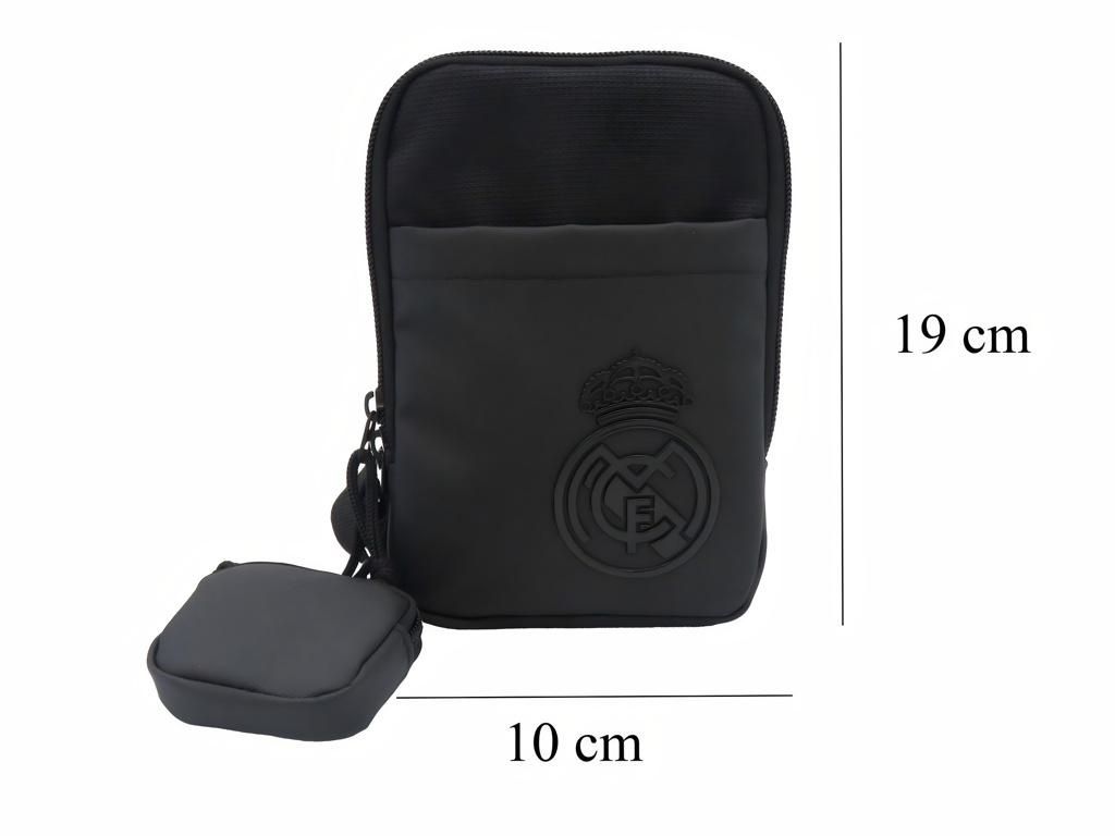 Kompaktní taška přes rameno Real Madrid v černém provedení s odnímatelnou kapsičkou na sluchátka. Celá v černé barvě, na přední straně s decentním pogumovaným znakem klubu. Uvnitř najdeš přihrádky pro přehlednou organizaci drobností a kapsičku na zip. Odnímatelná mini kapsička připnutá karabinou k popruhu pojme sluchátka, nabíječku nebo drobné příslušenství. Nastavitelný textilní popruh ti umožní nosit tašku crossbody nebo přes rameno přesně tak, jak ti to vyhovuje.