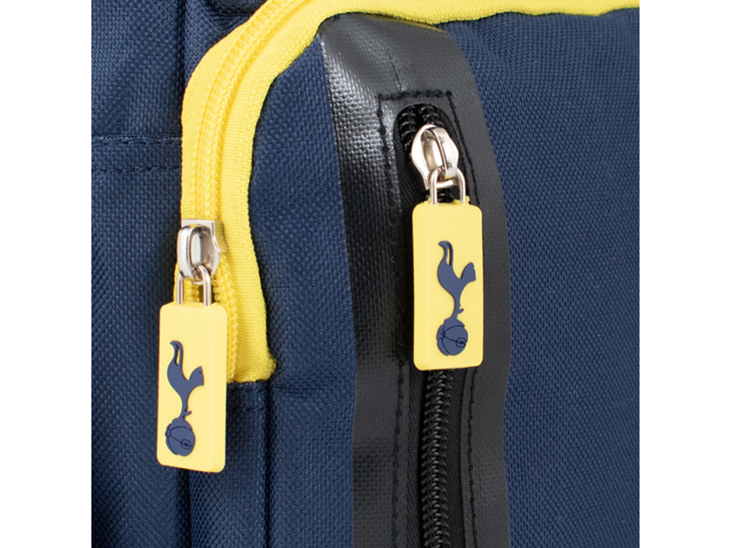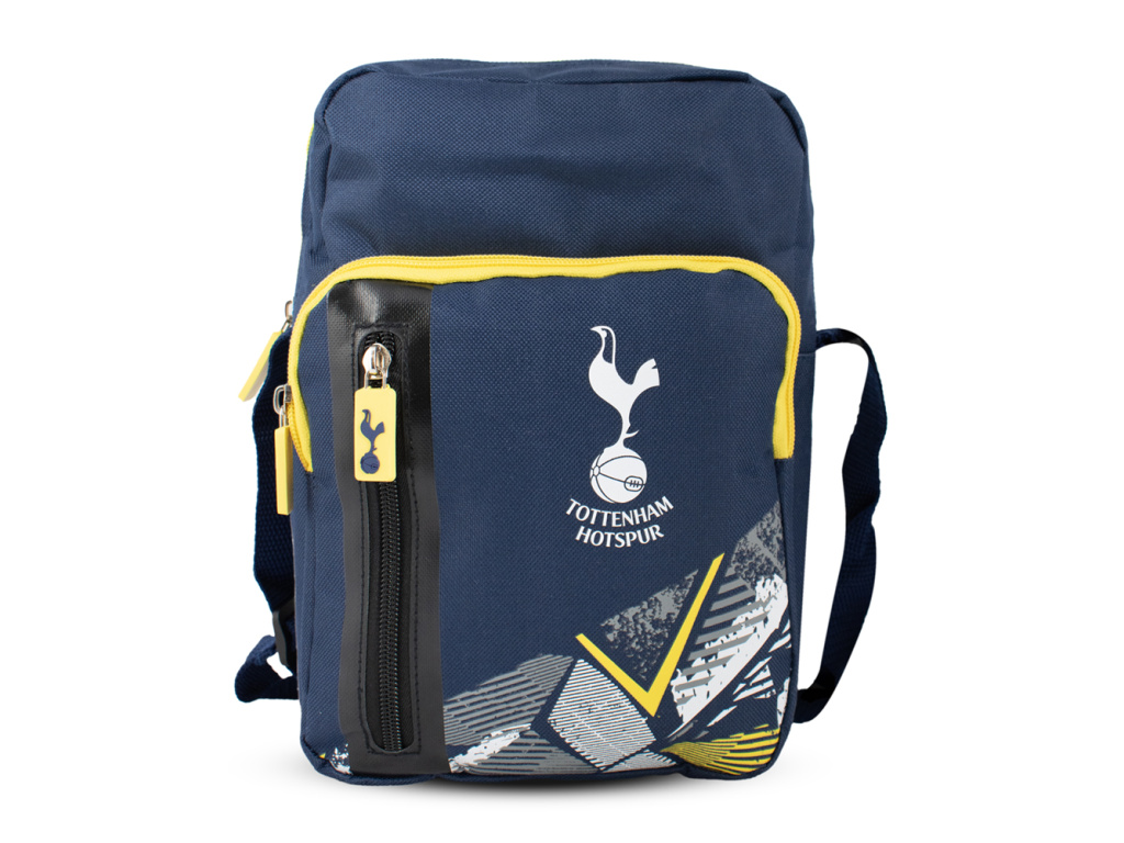 Kompaktní taška přes rameno Tottenham Hotspur pro každodenní nošení v tmavě modré se žlutými detaily. Hlavní komora má dvojitý zip pro rychlý přístup. Vpředu jsou 2 kapsy na zip – prostorná horní a úzká svislá. Uvnitř je otevřená kapsa na drobnosti. Nechybí nastavitelný ramenní popruh. Přední stranu zdobí bílý klubový znak a grafický potisk. Rozměry 25 × 18 × 8 cm pojmou telefon, peněženku i klíče. Textilie se snadno udržuje.