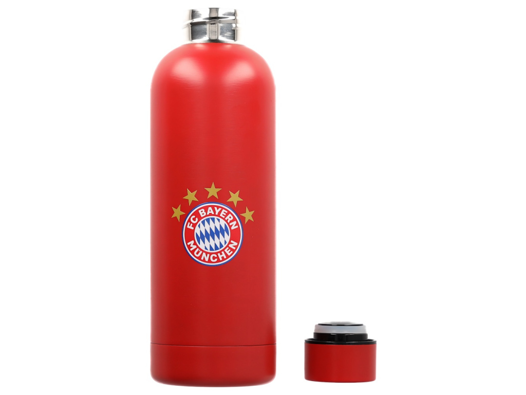 Termoláhev FC Bayern Mnichov v červené barvě. Kvalitní nerezová ocel. Objem 500 ml. Barevný znak klubu uprostřed. Kvalitní těsnicí víčko.