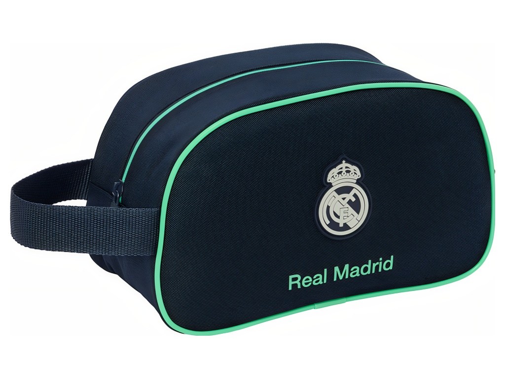 Toaletní taška Real Madrid v tmavě modré pro přehledné uložení hygieny doma i na cestách. Čelní stranu zdobí klubový znak a nápis v mintové barvě. Hlavní komora se široce otevírá po celé délce zipu pro snadný přístup. Uvnitř je prostor pro kosmetiku a drobnosti. Na boku je boční poutko do ruky. Na zadní straně nechybí průvlek na kufr pro pohodlné převážení. Objem 5 l v kompaktních rozměrech se hodí do šatny i do cestovní tašky.