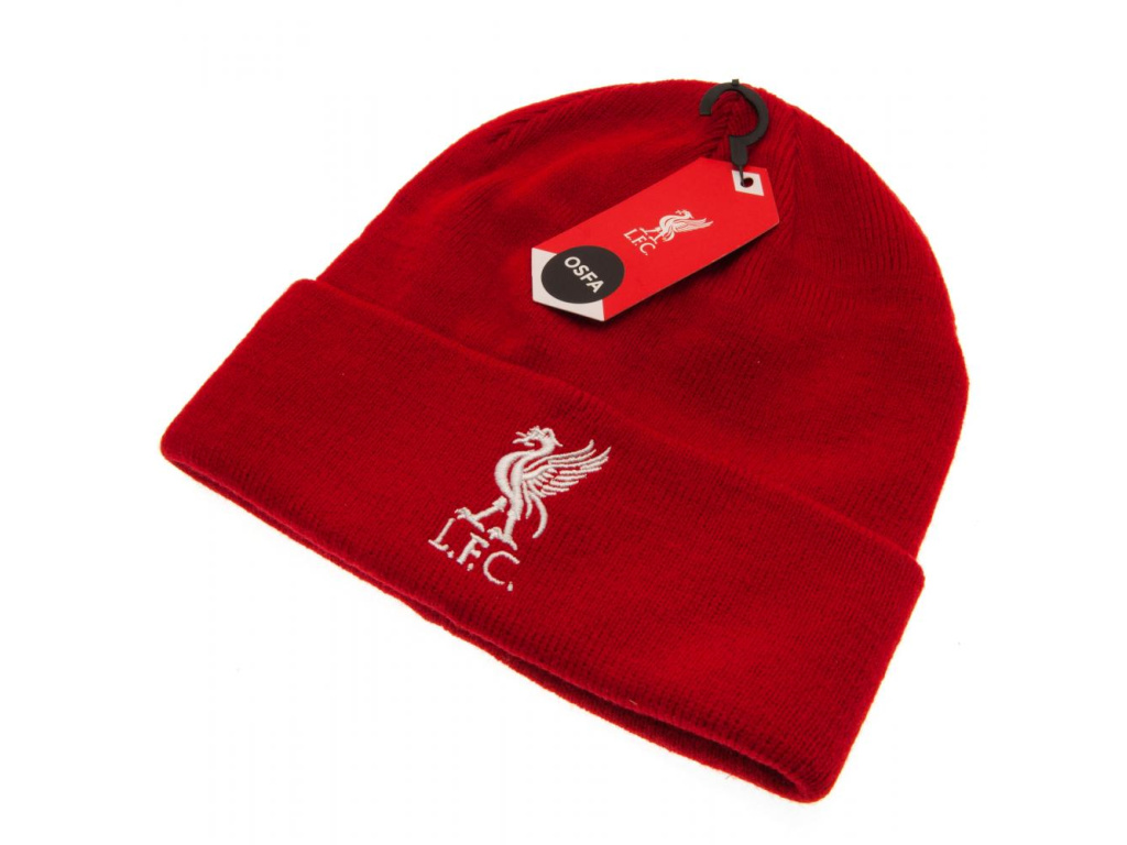 Zimní čepice Liverpool FC v červené barvě. Bílý vyšitý znak legendárního klubu zdobí přední část. Jednoduchý slušivý střih. Spodní lem klasicky ohrnutý nahoru. Příjemný akryl. Univerzální velikost.