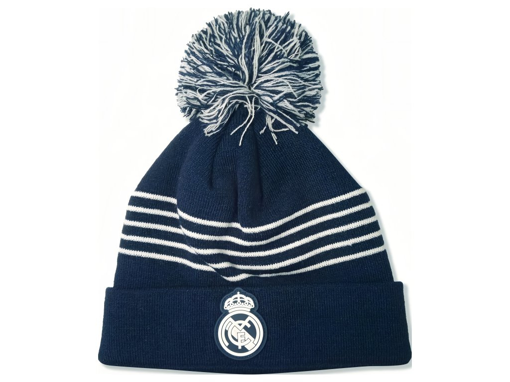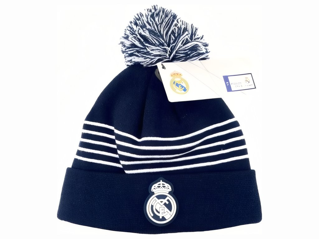 Zimní čepice Real Madrid FC, tmavě modrá, s bambulí